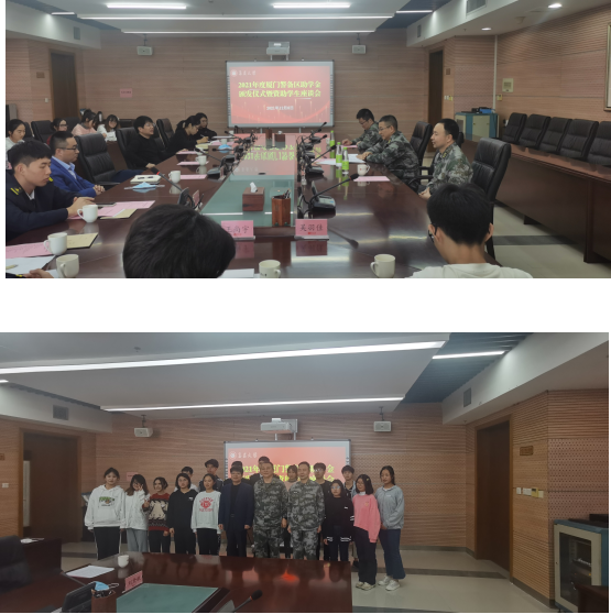 12月8日下午,厦门警备区副司令员波拉提、政治工作处主任潘应境一行莅临我校,参加厦门警备区2021年度助学金颁发仪式暨资助学生座谈会。党委学生工作部部长张晖怀、副部长雷会彬、学生资助管理中心相关人员及全体受助学生参加了会议。会议由张晖怀主持。