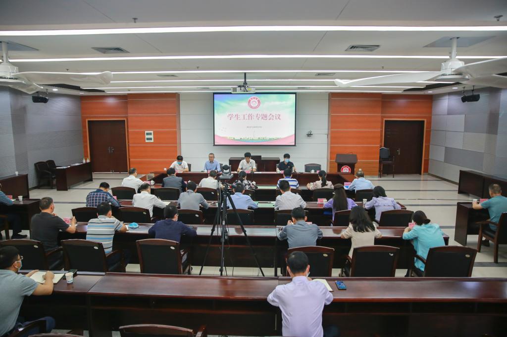 10月27日上午,我校召开学生工作专题会议,研究部署加快推进下阶段学生工作和我校“三全育人”综合改革试点工作。校党委副书记洪文建,学校相关职能部门和马克思主义学院负责人,各学院党委副书记、全体辅导员等参加会议。