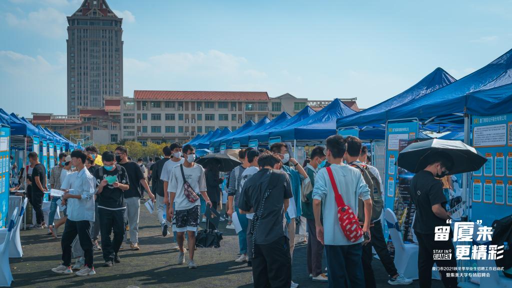 10月26日,厦门市2021秋冬季毕业生招聘工作启动式暨集美大学专场招聘会在我校光前体育馆举办。本场活动由市委组织部、市人社局及市国资委联合主办,市人才服务中心、市高层次人才发展中心、集美大学学生工作部承办,市人力资源服务产业园(火炬园)及市人力资源服务产业园(海沧园)协办。