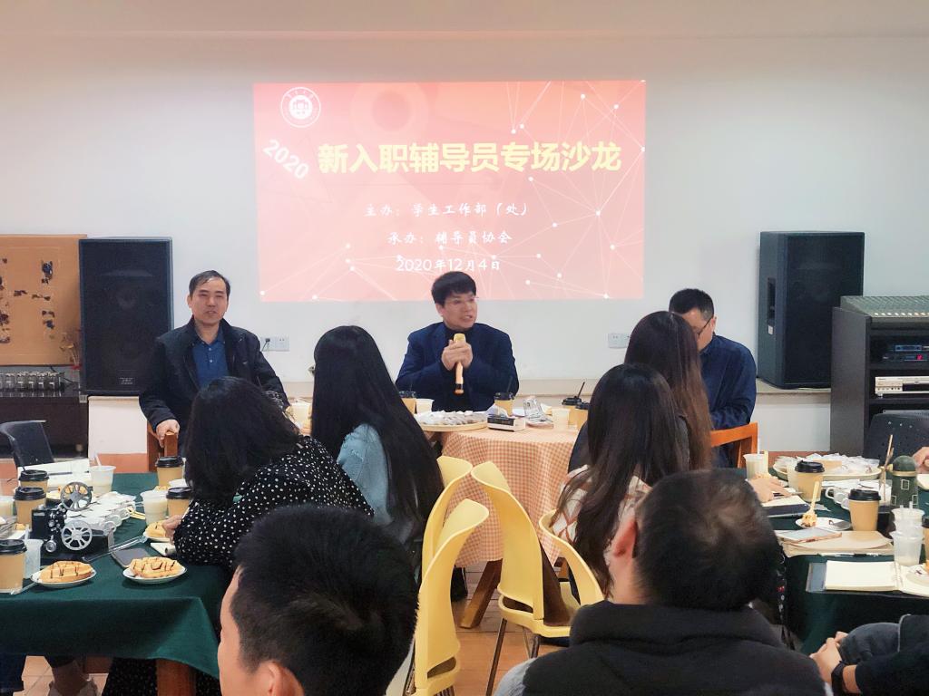 为进一步加强和改进辅导员队伍建设,为辅导员搭建交流研讨平台,促进辅导员职业素质和工作水平的提高,12月4日下午,我校举办了2020年新入职辅导员沙龙活动。学生工作部部长张晖怀、学生工作部副部长雷会彬、食品与生物工程学院党委副书记朱坤道及全体2020年新入职辅导员参加了此次沙龙,活动由雷会彬副部长主持。