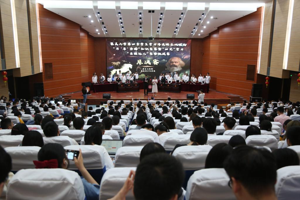 11月25日,我校在尚大楼105报告厅举办第四季学生学习马克思主义理论“万‘马’奔腾”知识竞赛暨“四史”学习“百强达人”竞答挑战赛总决赛。校党委副书记洪文建,宣传部、学工部、校团委等部门负责人,马克思主义学院负责人,各学院党委副书记,全体辅导员,学生代表等500余人观看了比赛。