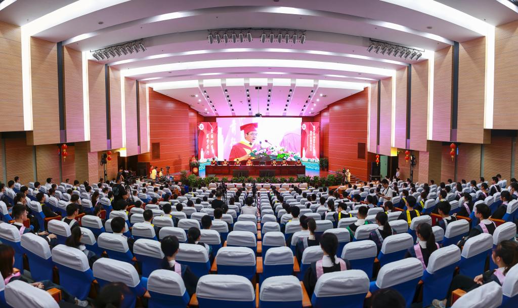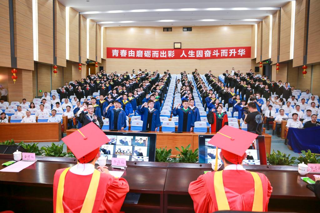 6月23日,我校举行2020届学生毕业典礼暨学位授予仪式。今年学校首次以“1个主会场+18个分会场”“线上+线下”的方式举办毕业典礼,主会场在尚大楼105报告厅,全国各地的毕业生、家长、校友通过“云端”观看直播,共同见证这一难忘时刻。校领导、学校相关部门负责人、各学院党政领导、教师代表、毕业班辅导员和2020届研究生和本科毕业生参加典礼,毕业典礼由校党委副书记洪文建主持。