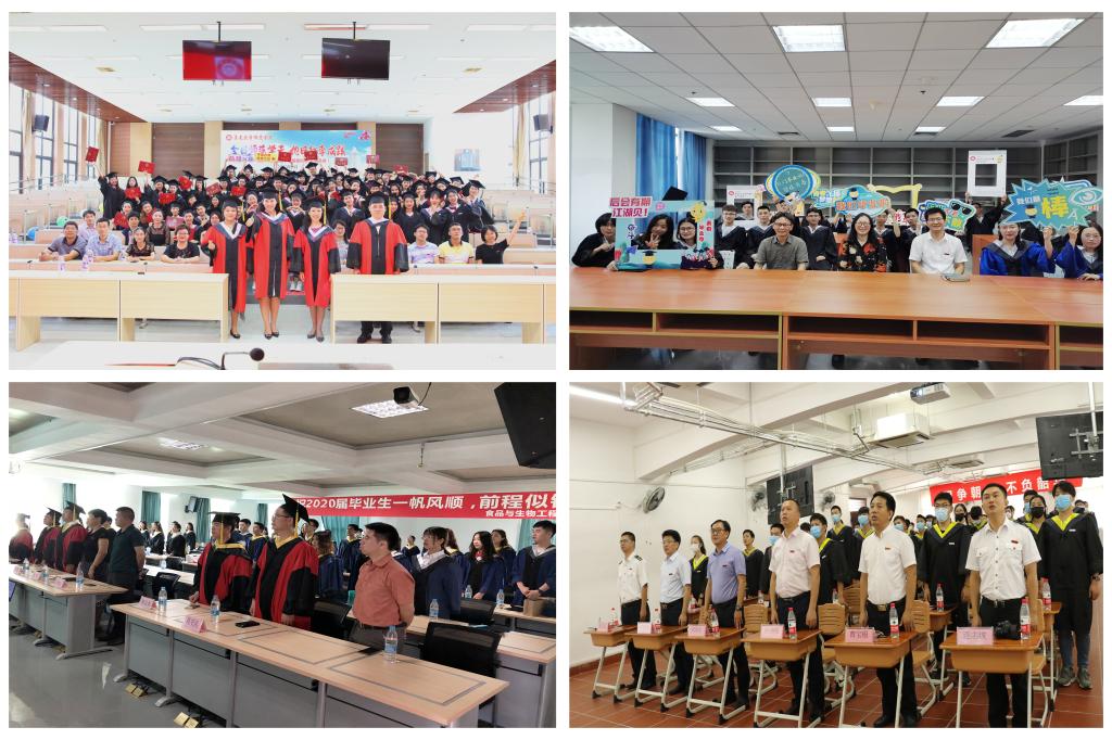 在学位授予仪式上,校领导为毕业生代表拨正流苏,颁发学位证书、合影留念。典礼上还播放了学校精心制作的专题片《我的大学——致2020届毕业生》满载着毕业生的温情回忆和离别不舍之情。