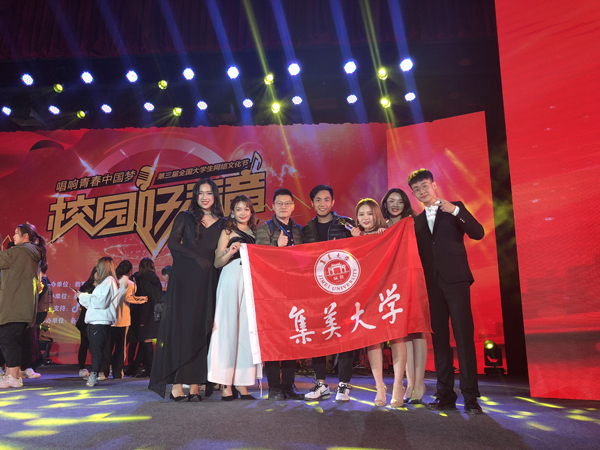 本次团队展示活动共分为“团队展示”、“主题演绎”和“终极对决”三个环节。我校代表队由黄雅阁、朱雪梅、李思语、普阳雪禾、陈梓炀五位同学组成。五位同学凭借扎实的唱功、精彩的演绎,得到了在场所有评委的好评。最终,根据专家现场评审,我校荣获华南赛区亚军,并将代表华南赛区晋级2018全国大学生年度音乐盛典。