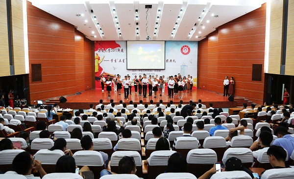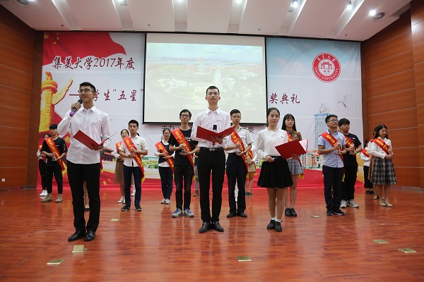 10月25日下午,我校在尚大楼105报告厅举行2017年度学生“五星”颁奖典礼暨先进事迹报告会,现场揭晓我校2017年度学生“五星”评选结果,聆听新时代“五星”代表践行校训好故事,传播核心价值观正能量。校党委副书记郑志谦,宣传部、学工部、团委、马克思主义学院等单位负责人,各学院党委副书记,全体辅导员,“五星”获奖者及学生代表出席了颁奖典礼。