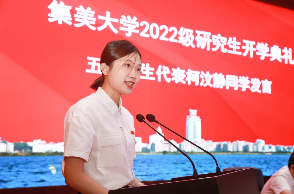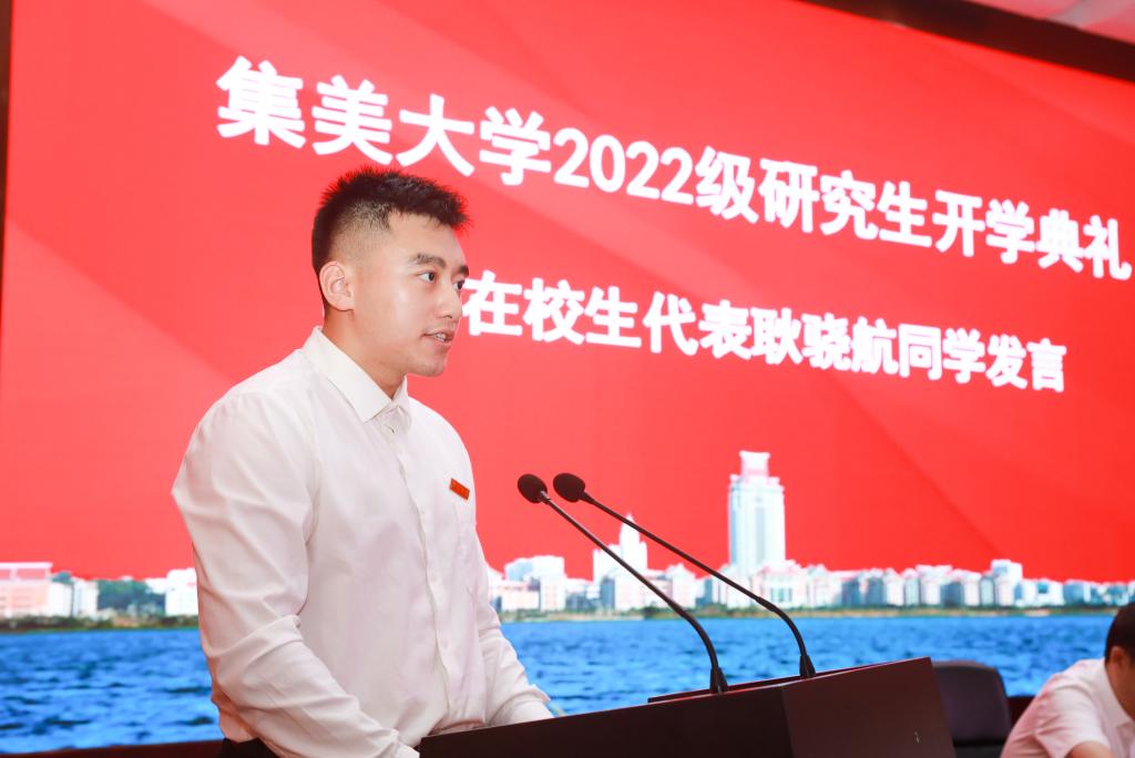 在校生代表2020级渔业发展专业研究生耿骁航同学、新生代表2022级艺术设计专业研究生柯汶静同学分别发言。