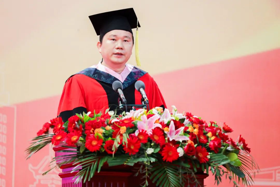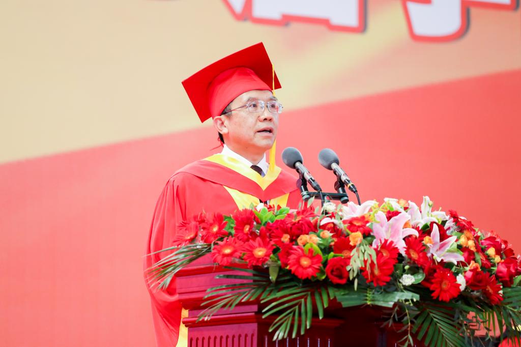 集美大学党委副书记、校长李清彪作题为《过往未往铭序章未来已来书正篇》的致辞,对即将走向社会的毕业生们如何将过往经历转化为弥足珍贵的阅历,以此促成长、助发展提出建议。一是回顾过往,铭刻序章。回顾历程让人进步,反思差错让人醒悟,牢记教训让人成熟。一切过往都该铭刻为面向未来的序章,成为书写人生正篇的必然铺垫!二是面向未来,书写正篇。遇到大风大浪,要避免翻船落海,需要稳妥地驾驭自己。要做到心有明灯不盲从,吸纳有用的历史启示,形成追求真理、崇尚科学的价值标准和人生指南;修为有品不冲动,修行隐忍,以预判的效果和后果来约束自我,为“言行”设时限,为“自由”划疆界,为“权利”定条件;胸有全局不自我,有全局意识、系统思维,知轻重,慎举动,心中有他人、眼里有社会。希望集大学子弘扬嘉庚精神,以“舍小我而利公,行大道而忘我”的情怀,以“胜似闲庭信步”的从容,乘风破浪奔向“白马秋风塞上,杏花春雨江南”的诗意远方。