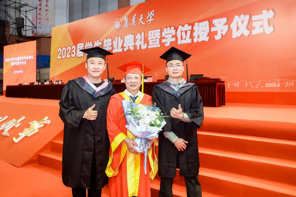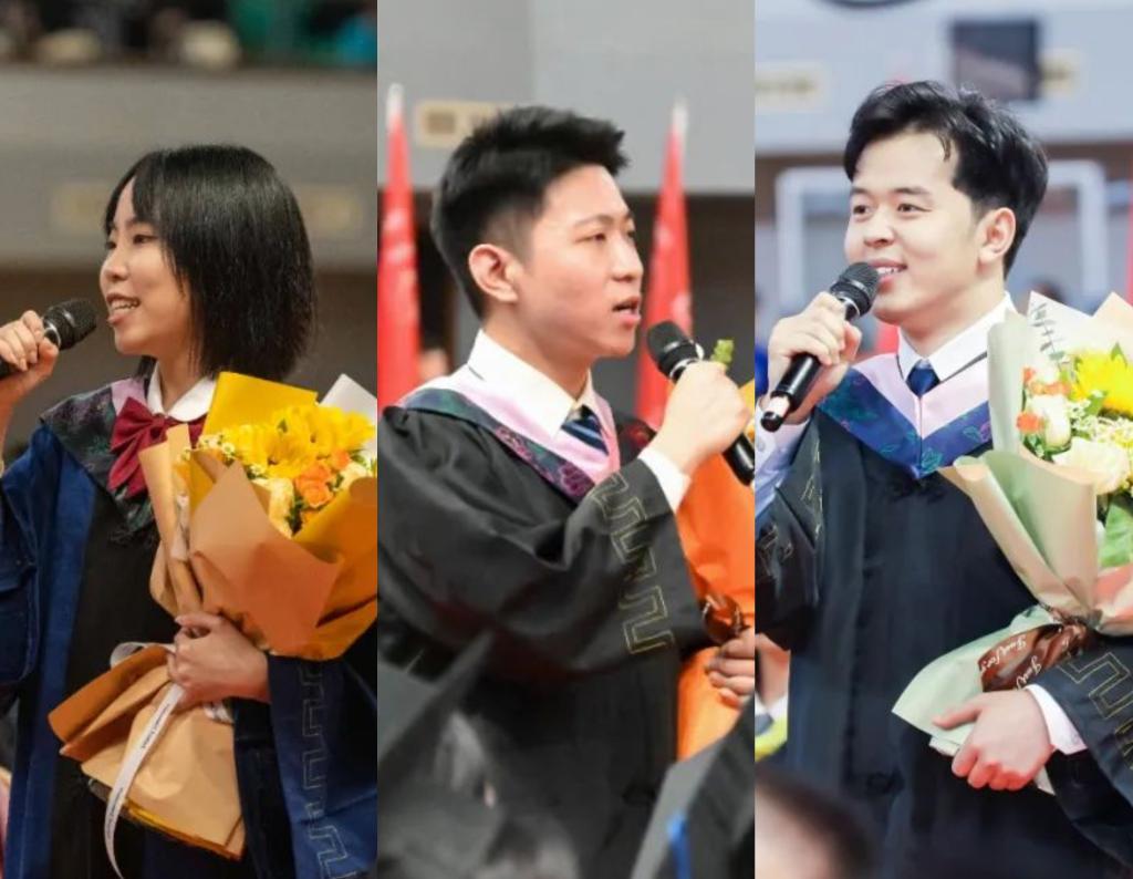 毕业生代表曾静铭、刘昶、艾仁山围绕“挺膺担当·逐梦征程”的主题,回顾了自己在集大的求学生涯、逐梦之旅,他们将赓续嘉庚精神血脉,镌刻集大百年荣光,以不懈的奋斗书写“时代答卷”,让青春在全面建设社会主义现代化国家的火热实践中绽放绚丽之花。